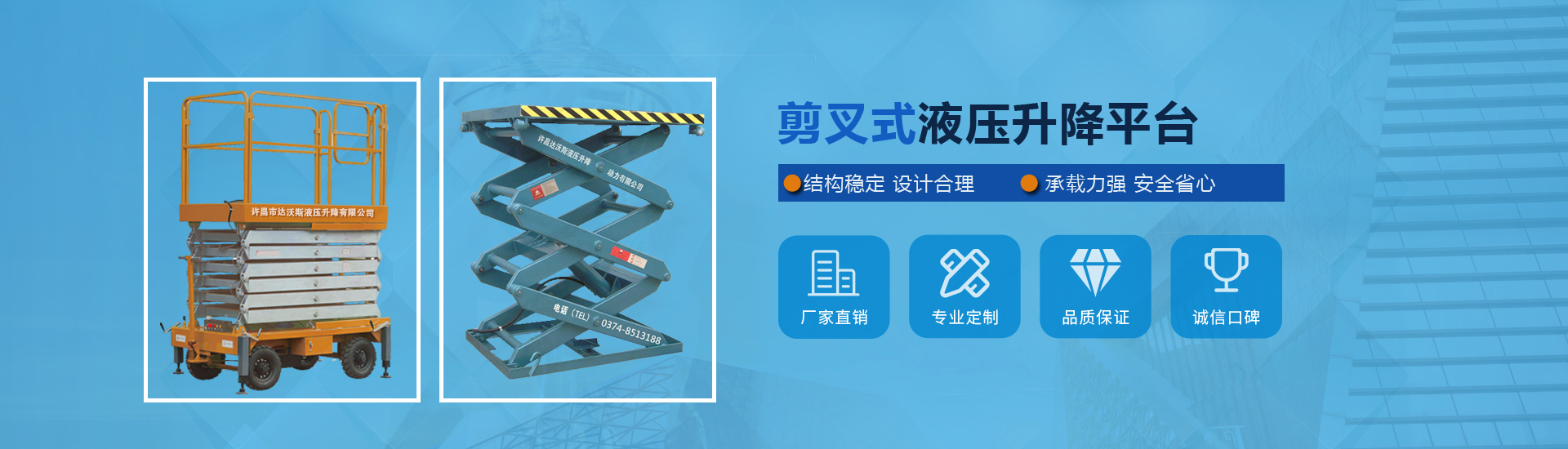 許昌市達沃斯液壓升降動力有限公司擁有標準的現(xiàn)代化廠房,公司主要從事液壓升降機械和貨物舉升方案。主要生產產品為:SJY剪叉式高空作業(yè)平臺,SJG固定式液壓升降臺、固定式液壓升降貨梯、DCQ固定式液壓登車橋、DCQY移動式液壓登車橋、GTZ/GKT曲臂式高空作業(yè)平臺、GTC套港式高空作業(yè)平臺、詭柱式高空作業(yè)平臺,以及各種非標產品的定制...